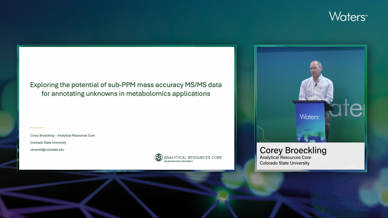 In this presentation, learn how Corey Broeckling from Colorado State University explores the potential of sub-PPM mass accuracy MS/MS data for annotating unknowns in metabolomics applications.