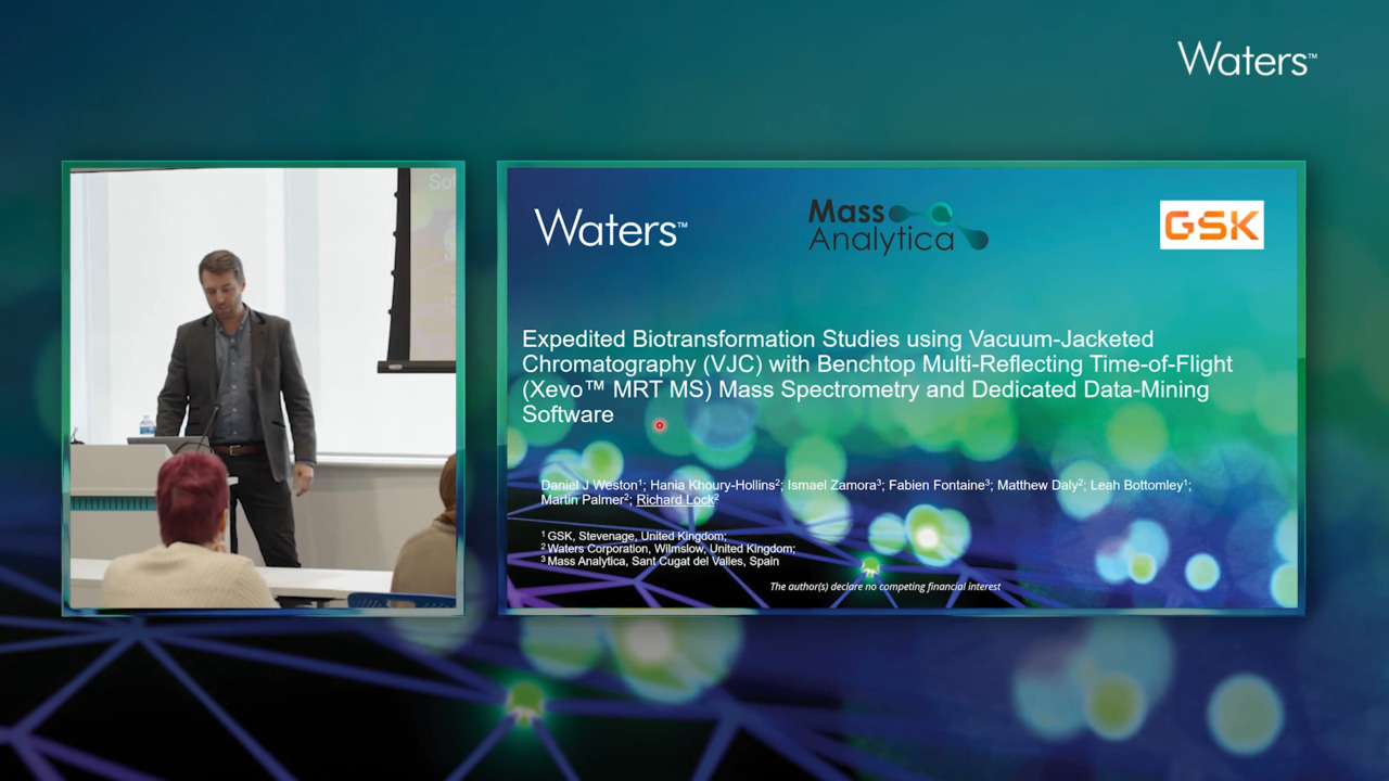 Waters Annual Technology Forum presentation highlighting biotransformation studies using vacuum-jacketed chromatography (VJC) with Xevo MRT MS and dedicated data-mining software presented by Matthew Daly